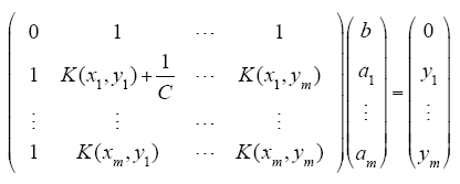 求解该线性方程组即可得到Lagrange乘子α和偏差b,由此得到LS-SVM的模型为