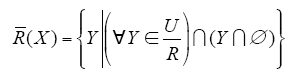 定义2 为介绍知识(空间)的相似程度,粗糙集理论引用精确度的概念,分别定义R的上近似和下近似的两个子集为