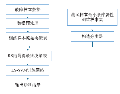 实验选取水泥回转窑影响窑主传动电流的参数作为输入,以水泥制造厂的回转窑主传动电流数据为输出进行预测研究,首先利用处理过的回转窑相关设备生产数据,结合使用RS和LS-SVM的方法对窑主传动电流进行故障预测研究。流程图如图3所示。