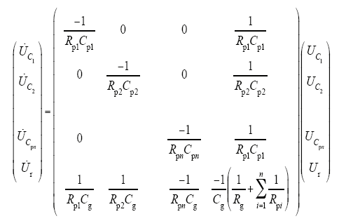 首先以N = 1扩展德拜模型为例进行全解析理论分析,从直流电压施加瞬间至tc时间范围内,第n个电容Cpn上的电压变化过程为