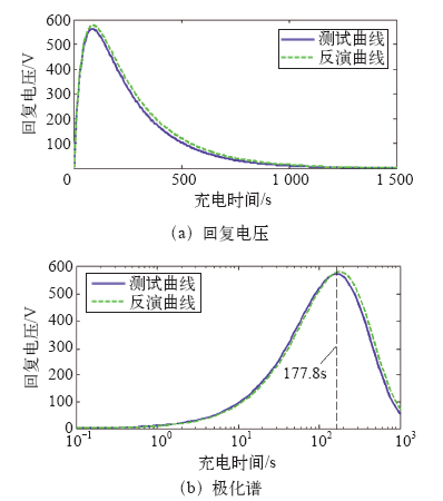 从图16可以看出,回复电压和极化谱测试曲线、反演曲线基本保持一致,说明Simulink-PSO联合算法能根据回复电压测试结果有效反演扩展德拜电路模型的集总参数。