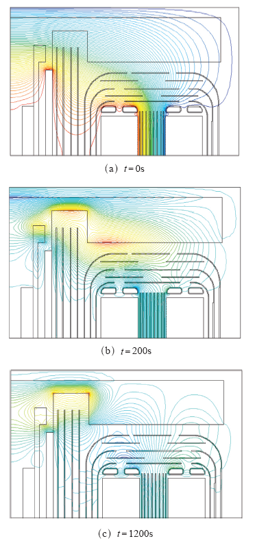关键时间点油纸绝缘系统等位线分布