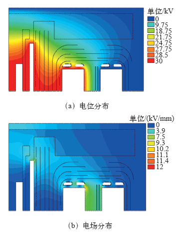 配电变压器油纸绝缘系统电位和电场分布