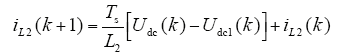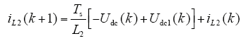 式中,Udc1(k)为k时刻中间级电容C1两端的电压;IL2(k)为k时刻第二级变换器的电感电流;Ts为采样时间。