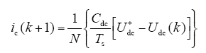 直流母线功率的波动将表现为母线电压即Cdc两端的电压的变化,由于母线电容Cdc两端的电压的改变只能通过调整流过该电容的电流来实现,而且电容两端的电流不能无限大,因此引入参考预测范围N。通过母线电压给定值Udc*、当前时刻母线电压采样值Udc及N可计算出下一采样时刻滤波电压值U1,即