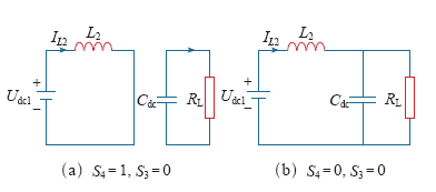 预测模型是根据开关管的不同开关状态对应的双向DC-DC变换器的等效电路得到的,Sg = 1(g = 3,4)代表IGBT导通,Sg = 0(g = 3,4)代表IGBT关断。双向DC-DC变换器工作在Boost模式时所有开关状态对应的等效电路如图5所示。