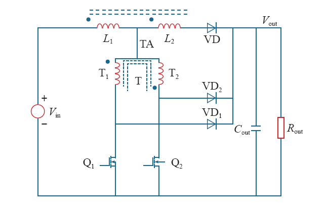 两种工作状态时,输出电流都受到耦合电感或变压器的限制,因此输出电流连续[5],由此可得Weinberg电路的电压增益为
