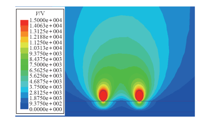 式(3)中,系数矩阵K又称为刚度矩阵,再利用边界条件,就可以求出每个节点的电位[12]。然后由电位求电场强度、电荷密度及电流密度等其他物理量。通过建立二维或三维电场计算模型,由有限元计算软件可方便地实现上述计算过程,得出需要的计算结果。