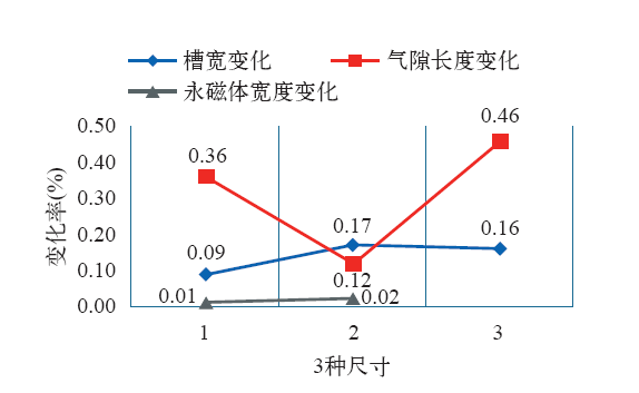 接着计算永磁体温度随这3种尺寸变化的变化率,做出比较如图9所示。