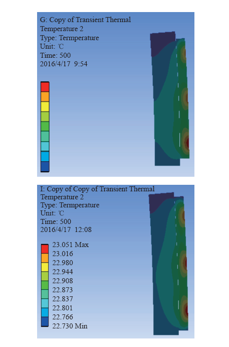 | Fig.8 Temperature contours of the permanent magnet with the change of PM width |