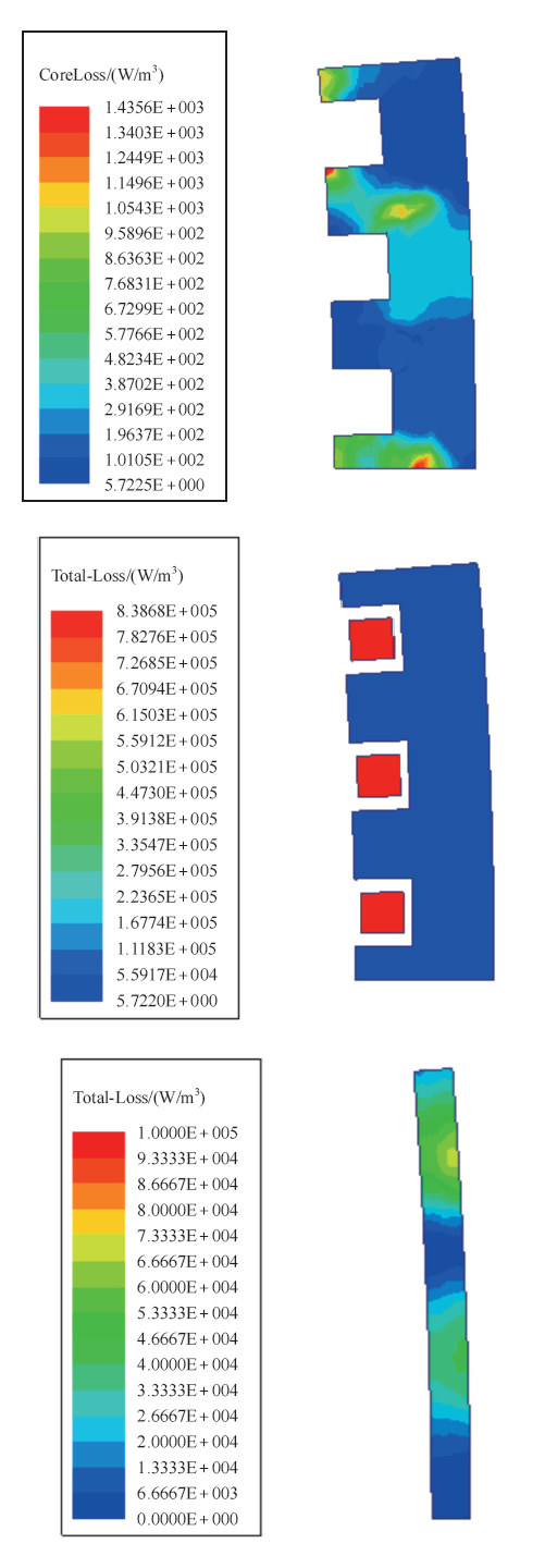 | Fig.3 Loss contours of iron loss,copper loss and eddy current loss of permanent magnet |