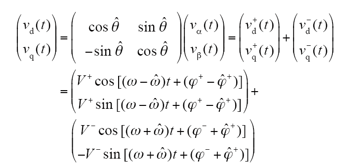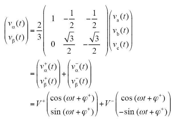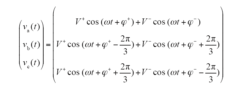 式中,V+为正序分量的最大值;V-为负序分量的最大值;ϕ+、ϕ-为初相位;ω = 2π×50rad/s为基波角频率。