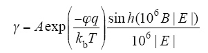 式中,A为与材料有关的常数(V/(Ω·m2));ϕ为活化能(eV);q为电子电荷量(C);kb为玻尔兹曼常数(J/K);T为材料温度(K);B为电导率对电场的依赖系数(m/V);E为场强(kV/mm)。