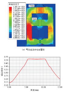 | 图5 有永磁铁时磁场分布及气隙磁通密度剖面图 |