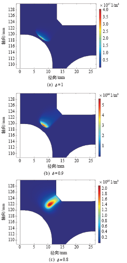 | Fig.7 Distribution of electron density in different two emission coefficients |