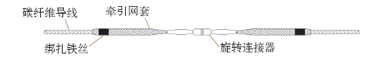 碳纤维导线之间采用上述相同的连接方式。旧导线与碳纤维导线之间或两根碳纤维导线之间采用旋转连接器连接,如图6所示。