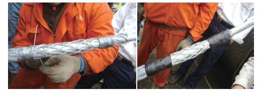 旧导线之间的连接头在展放过程中,应对耐张管加装护套管,防止在过滑车时发生弯曲变形,出现导线滑移甚至脱线的事故。