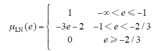 以e的模糊子集LN为例,该模糊子集的隶属度函数具体表达式为