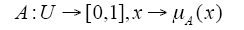 则称A是U上的模糊集;μA(x)称为模糊集A的隶属度函数(membership function),μA(x)的取值范围为[0,1]。