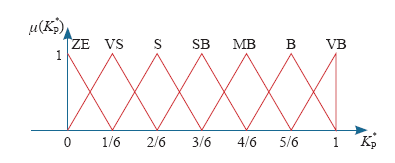 其中,KP*为规格化后的模糊逻辑控制器输出KP。与模糊逻辑控制器的输入e和