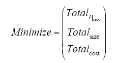 第二个目标函数和第三个目标函数考虑的分别是电力变换器的物理尺寸和成本,它们主要体现为各元器件的物理尺寸和成本的总和,可分别由简化的数学模型表示为