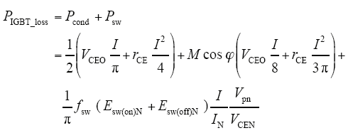 式中,VCEO为门槛电压;rCE为通态等效电阻;M为调制比;fsw为开关频率;Esw(on)和Esw(off)分别为开关器件开通一次和关断一次损失的能量;IN为额定工作电流;VCEN为额定工作电压。