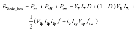 式中,VF为二极管正向通态压降;IF为通态电流;D为占空比;VR为二极管反向电压;IR为反向漏电流;Vfp为正向峰值电压;Ifp为正向峰值电流;tfp为正向恢复时间;Vrp为反向峰值电压;Irp为反向峰值电流;tb为反向电流下降时间;fsw为开关频率。