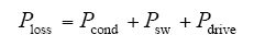 式中,通态损耗Pcond = I2RMSR;开关损耗Psw = V2in fsw;驱动损耗Pdrive = QgVg fsw;IRMS为方均根电流;R为功率元件的电阻;Vin为输入电压;fsw为开关频率;Qg为峰值栅极电荷;Vg为工作栅极电压。