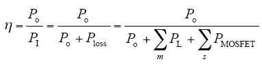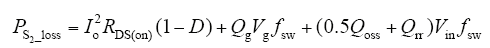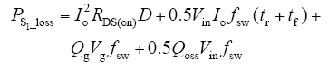 式中,D = Vo/Vin;RDS(on)为静态漏极到源极导通电阻;tr、tf为导通时间和开关时间;Qoss、Qrr为输出电容电荷和二极管反向恢复电荷。