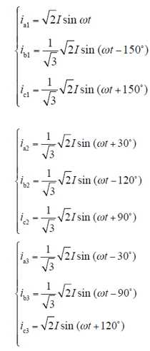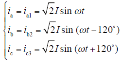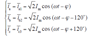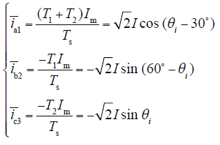 设流进每个桥臂的电流分别为iki,(k = a,b,c;i = 1,2,3),设输入三相电流对称,且有效值为I,则有
