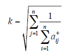 (2)根据式(3)、式(4)求k和m的值,从而得到满足一致性要求的可拓区间数权重向量为