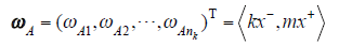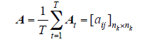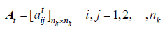 设A为层次结构中第k - 1层的一个指标,第k层有nk个因子与指标A相关,T个专家对与指标A相关的nk个因子两两进行权重比较时,由于判断的模糊性,给出的会是一个可拓区间数,最后由第t个专家得出的可拓区间数判断矩阵为