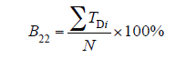 (1)供电可靠率指标B21。供电可靠率指标可用于定量分析配电网向用户供电的可靠程度,根据《供电系统用户供电可靠性评价规程》,供电可靠率选取为不记辖区外部电网事故造成的停电事故,计算式为