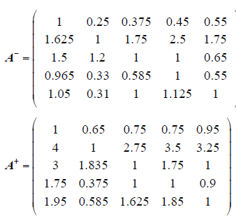 综合T个专家的意见,最后得出指标A的综合可拓区间数判断矩阵为