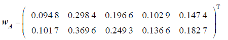 根据式(9)、式(10)可求得准则层对目标层的权重向量为