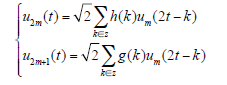 其中,g(k) = (-1)kh(1-k),函数um(t),m = 0,1,…称为由正交尺度函数u0 = φ确定的小波包。