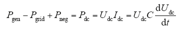 式中,Pgen为发电机输出有功功率;Pgrid为风机系统注入电网的有功功率;Pneg为从电网注入到风机系统的逆向能量;Pdc为变流器直流母线功率;Udc为直流侧电压;Idc为直流侧电流;Cdc为直流侧稳压电容。