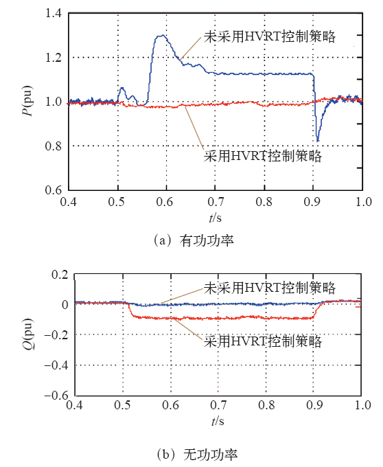 根据澳大利亚并网导则,分析在两种不同工况下HVRT效果。