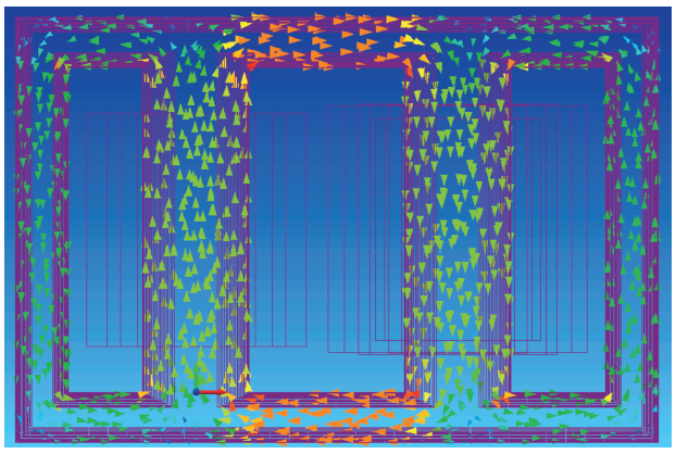 | Fig.7 Magnetic density vector diagram of HVmax-MV no-load operation core |
