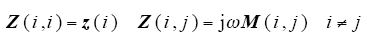 式中,M为导体的外自感阵;M(i, j)为导体i和导体j间的互感;z为导体内自阻抗向量,第i段圆柱导体的内自阻抗z(i)可表示为