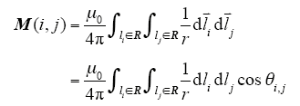 根据电磁场理论,导体间的互感M(i, j)的表达式如下