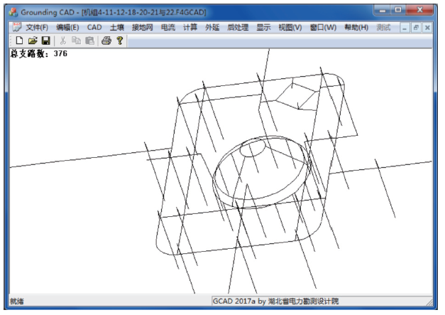 CDEGS具有DXF图纸的导入功能,但结果并不理想,示意图如图9所示。可见,商用接地软件在导入复杂风电场图纸的时候可能会出现问题,导入的导体信息并不完整。为了与本文的软件进行对比,本文软件导出了正确的几何数据,并输入到CDEGS中,再对两个软件进行接地参数计算结果的对比。