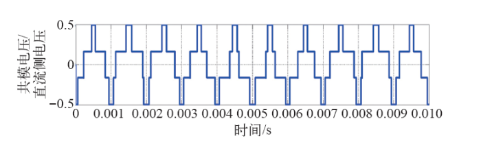 从图9可以看出,VSVM方案同样可以将共模电压的峰值抑制为Udc/6,且使得一个Ts周期内的共模电压的平均值为零、一个周期内共模电压均值为零,较好地抑制了共模电压中3次以及3的整数倍次谐波分量。