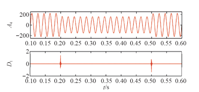 小波分析方法通过检测最高频段D1或次高频段D2的模极大值来实现电压暂降定位。在实际应用中,由于噪声和谐波的存在,往往会导致检测性能下降甚至失效。