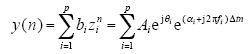 式中:n = 0~N - 1,N为y(n)的数据个数;p为模型阶数;Ai为模式幅值;θi为模式初相位;αi为模式衰减因子;fi为模式频率;Δt为时间间隔。