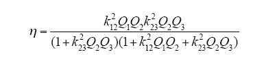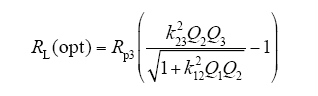 式中,Q为线圈的品质因数,品质因数是存储的能量与耗散的能量的比值。Q1 = ωL1/(Rp1 + RS),为发射线圈的品质因数;Q2 = ωL2/Rp2,为中继线圈的品质因数;Q3 = ωL3/(Rp3 + RL),为接收线圈的品质因数。