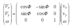 在世界坐标系中,平台沿两个坐标轴方向的线速度为VX、VY。VX、VY、ω与vx、vy、ω之间的关系式为