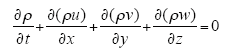 式中,ρ为密度;t为时间;u、v和w为速度矢量u在x、y和z方向的分量。