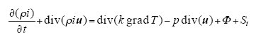 式中,u = ui + vj + wk,ρ、T和p分别为气体密度、压力和温度;u、v、w分别为气体三个速度分量;k为导热系数;R气体常数;i为气体单位质量总内能;λ为第二黏性系数;SMx、SMy、SMz为气体源;ST为热源。