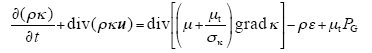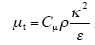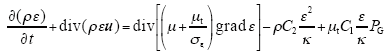 本文为反映断路器中湍流的影响,选用k-ε两方程模型。湍动能k和湍流耗散率ε满足以下微分方程组: